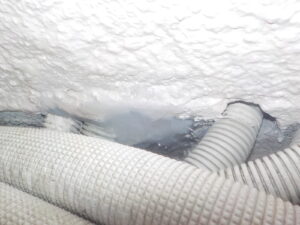 エコキュート配管を通す換気口横の