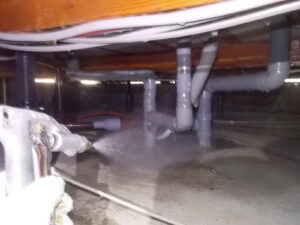 被害も蟻道や食害も多くあり床下、玄関、浴室周りと