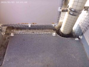 仕切り板の上下の空間部や配管パイプの隙間も