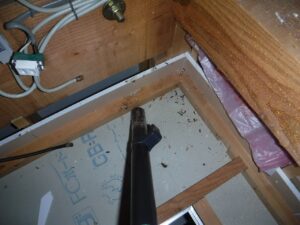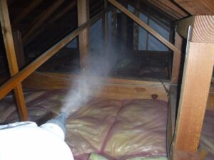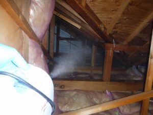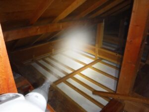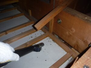屋根裏でのヤモリの糞清掃及び消毒作業